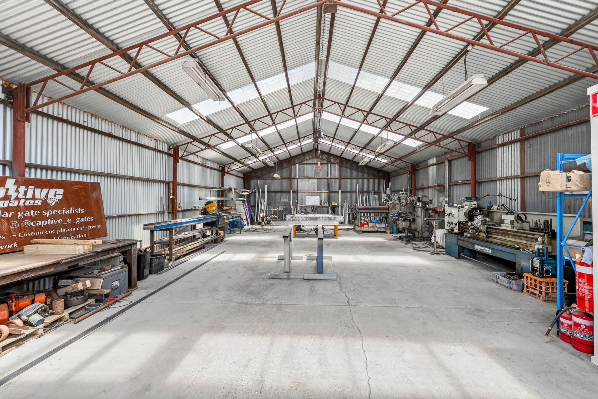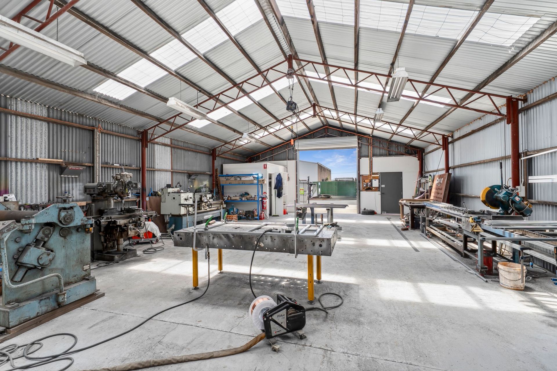 The property includes a full-height roller door, secure gated hardstand, and on-site amenities comprising a kitchenette and toilet. The layout and improvements are functional and efficient, well suited to trade-based users and industrial occupiers seeking a practical, low-maintenance facility.